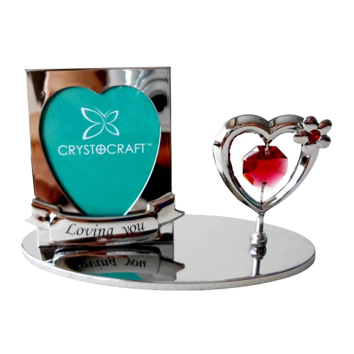 Crystocraft I Love You Photo Frame Heart Crystal Ornament Swarovski Elements