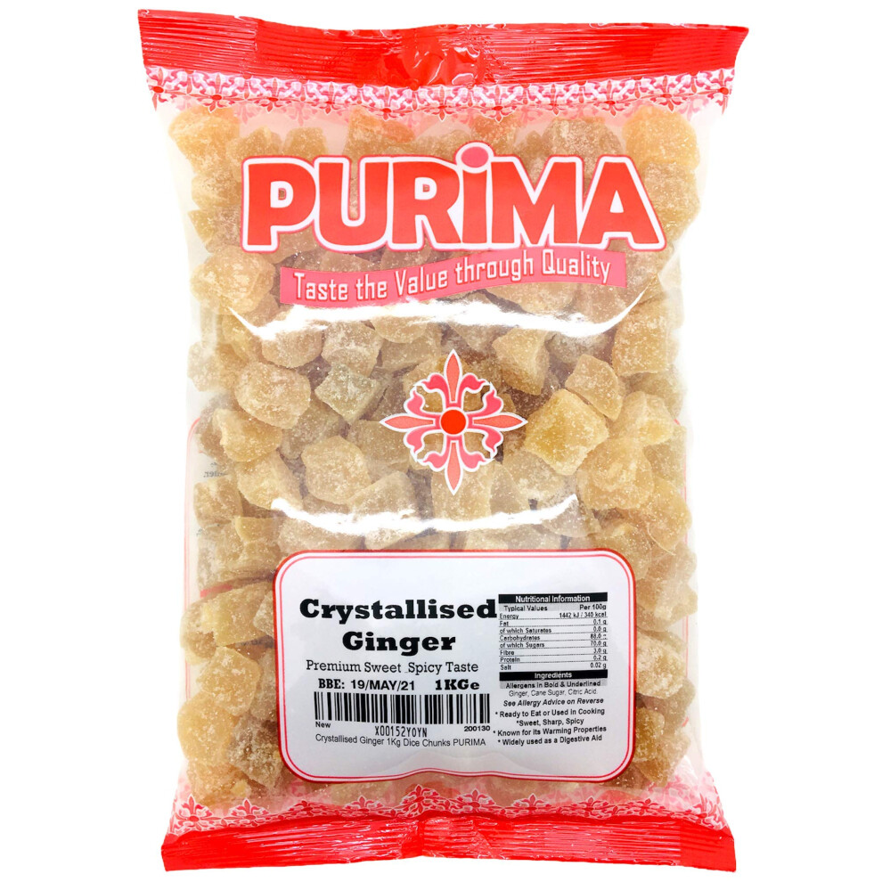 Crystallised Ginger 1kg - Crystalised Stem Ginger Root Chunks Dice Cubes Crystallized PURIMA