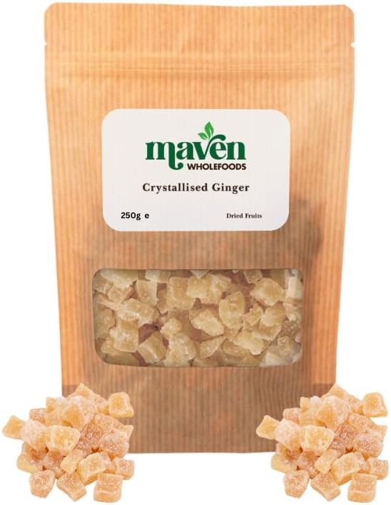 Maven Wholefoods Crystallised Ginger Chunks 250g | GMO Free | Vegan | Natural |