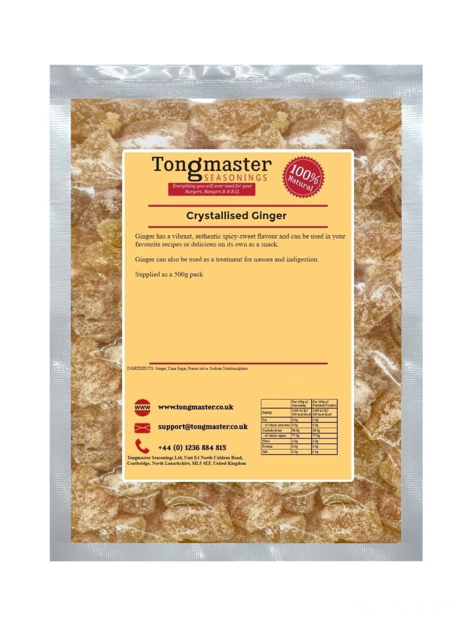 Ginger, Crystallised 500g | BWFO | Free UK Mainland P&P