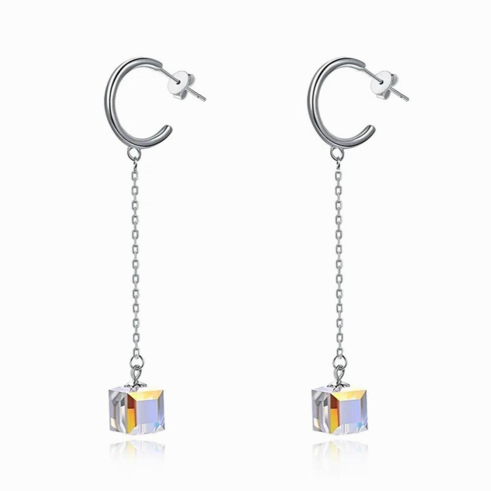 925 Sterling Silver Women Drop Earrings Long Tassel S925 Drop Cube Crystals Earrings for Lady Evening Party Jewelry Ears Drops