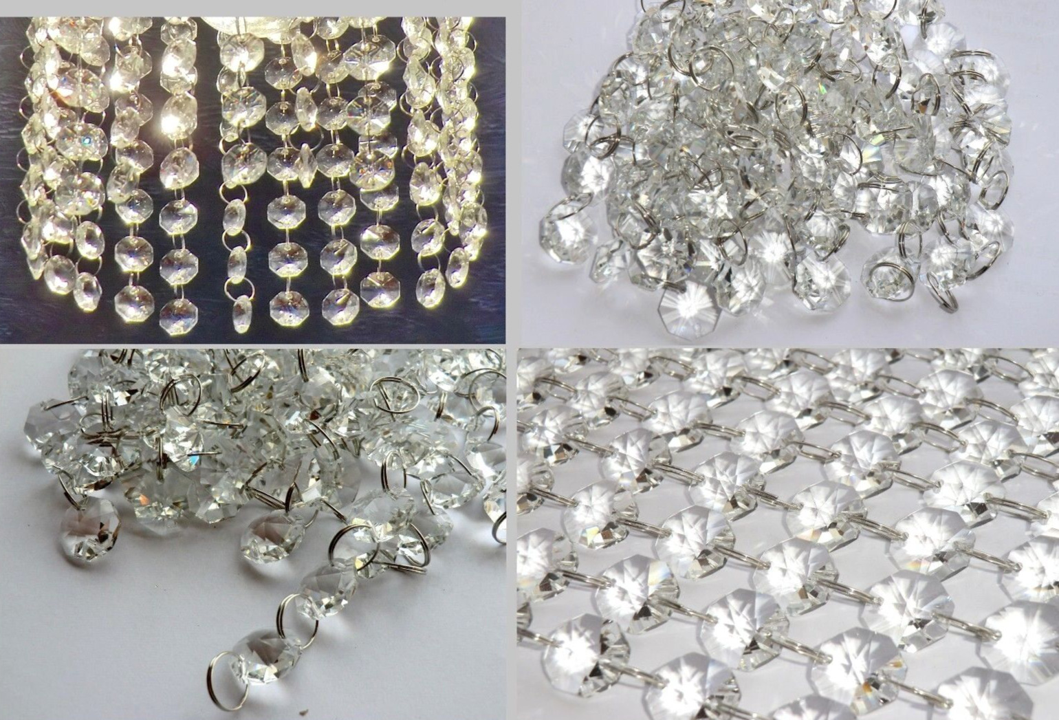 100 Chandelier Light Crystals 2m Garland 14mm Cut Glass Drops Beads Droplets