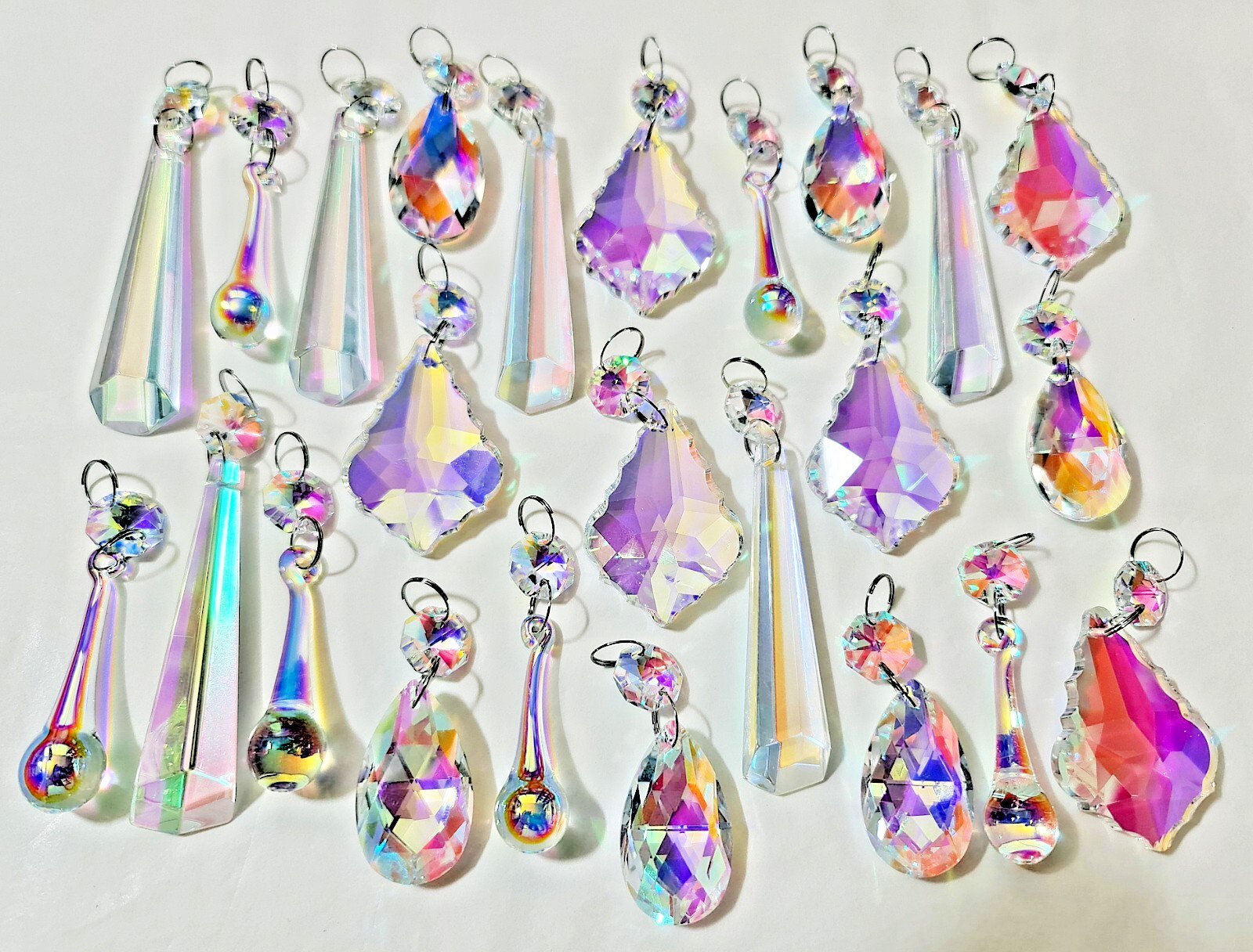 24 Chandelier Crystals Aurora Borealis Colour Glass Drops Beads Wedding Decor