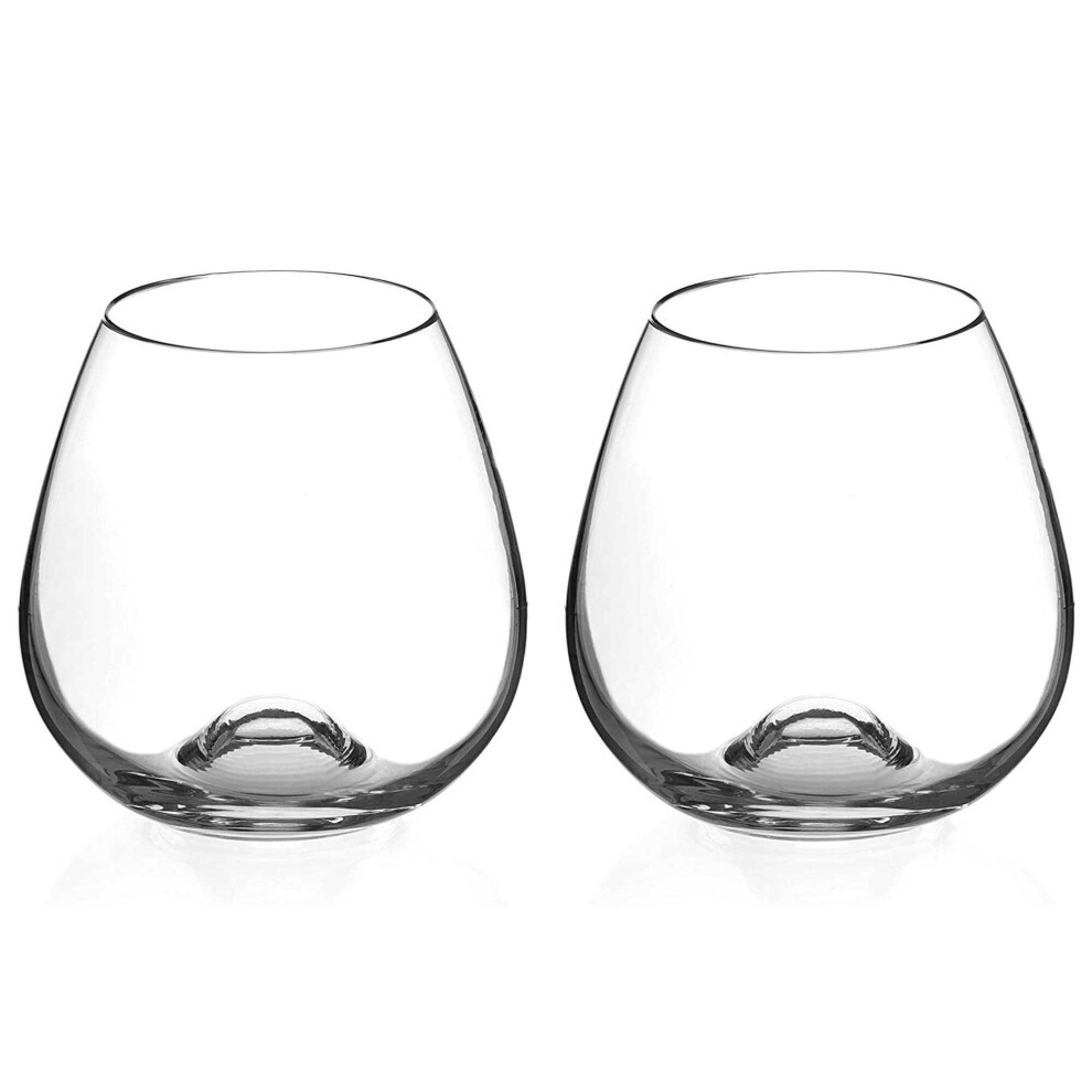 DIAMANTE Stemless Wine Glasses Pair âAurisâ â Undecorated Crystal Wine Glasses with no stem, stemless Gin Glasses â Box of 2