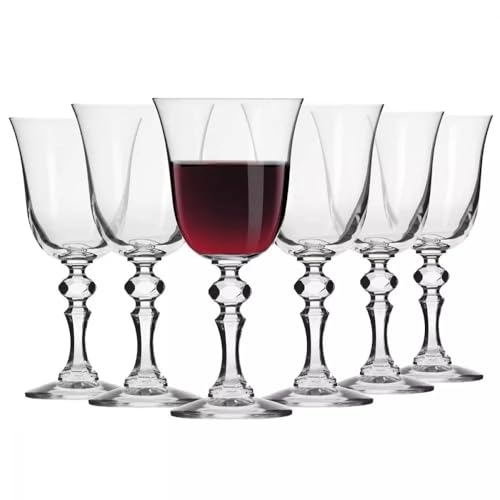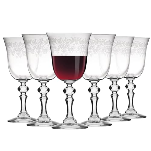 Krosno Red Wine Glasses Set of 6-250ml Crystal Wine Glasses for Red Wine - Tulip Wine Glasses with Decorated Stem, Lead-Free Crystal - Krista Collection