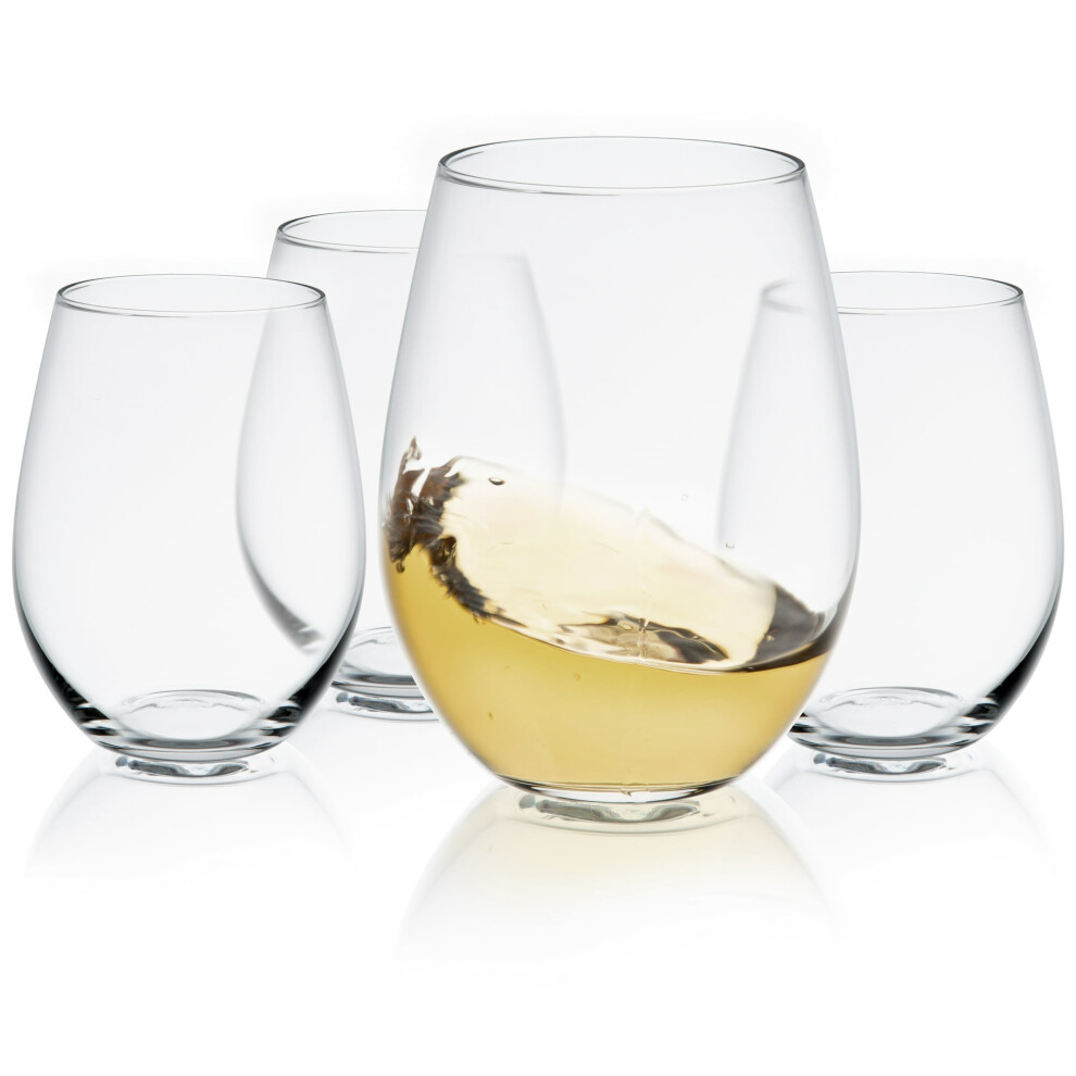 Stemless Wine Glasses Set of 4 âAuris' â Undecorated Crystal Wine Glasses with no stem, stemless Gin Glasses â