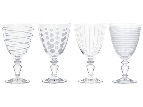 MIKASA Wine Goblet Set/Crystal Wine Glasses with Decorative Etching, Crystal Glass, Silver, 4 Count (Pack of 1)
