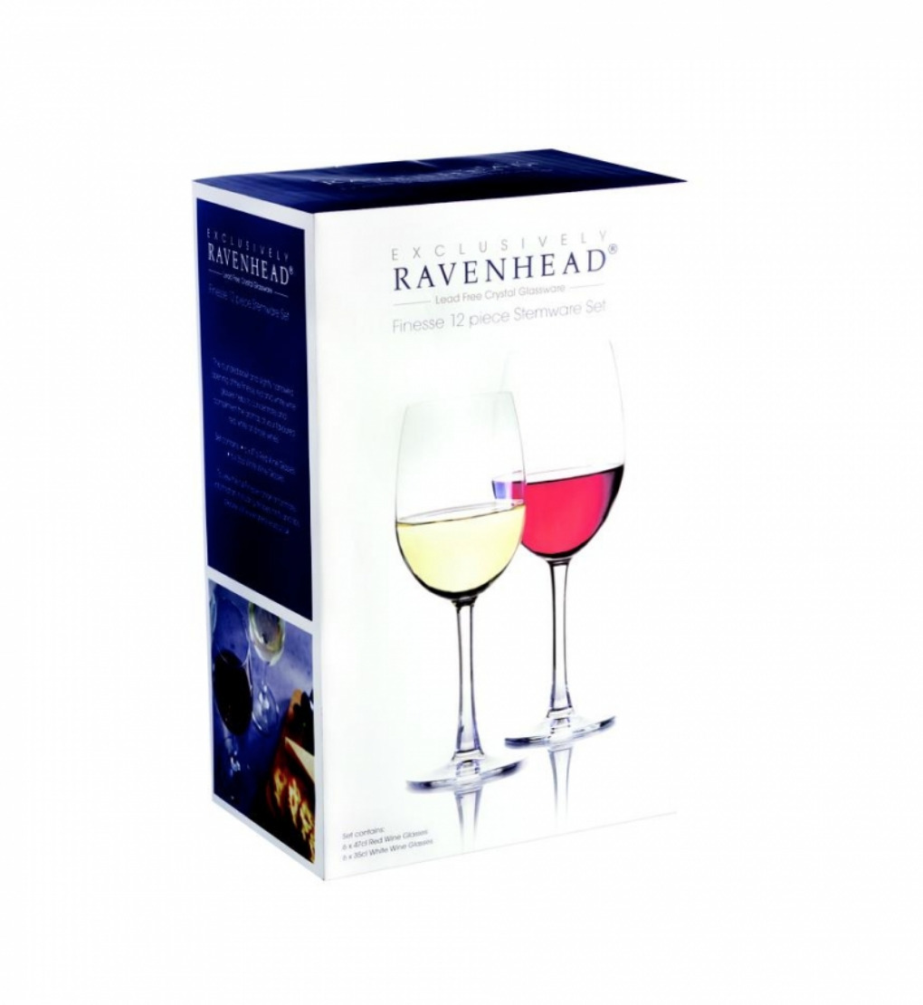 12 Piece Ravenhead Finesse Stemware Set Lead Free Crystal Wine Glassware Glasses