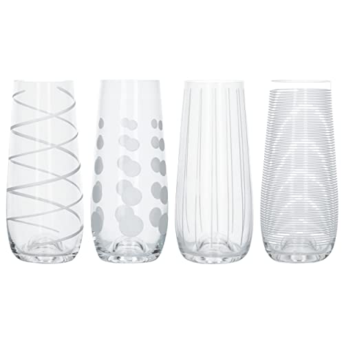 MIKASA Cheers Stemless Flute Glasses, Crystal Wine Glasses, Silver Design, 230ml, Set of 4