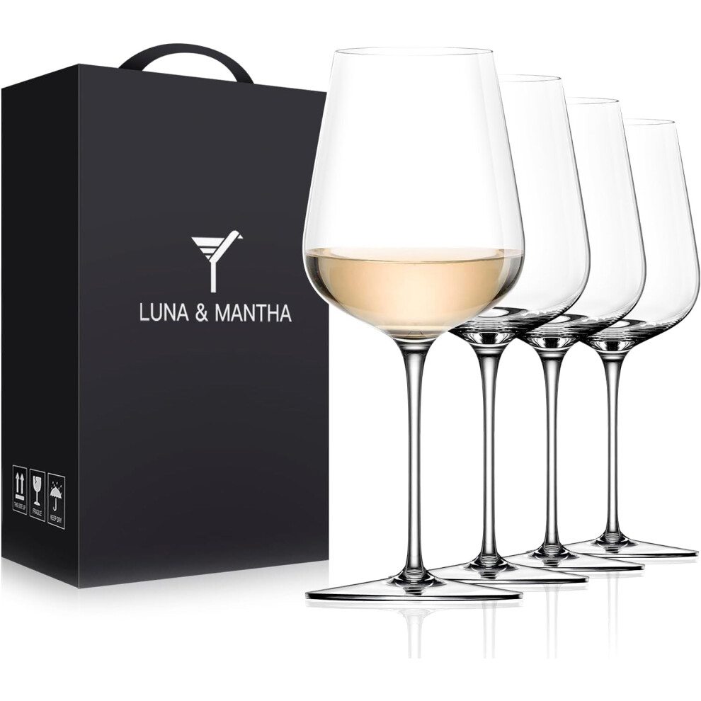 LUNA & MANTHA White Wine Glasses Set of 4 Crystal Wine Glasses with Stem Hand Blown 14oz Perfect for Red White Gift Packaging for Daily Use Weddin