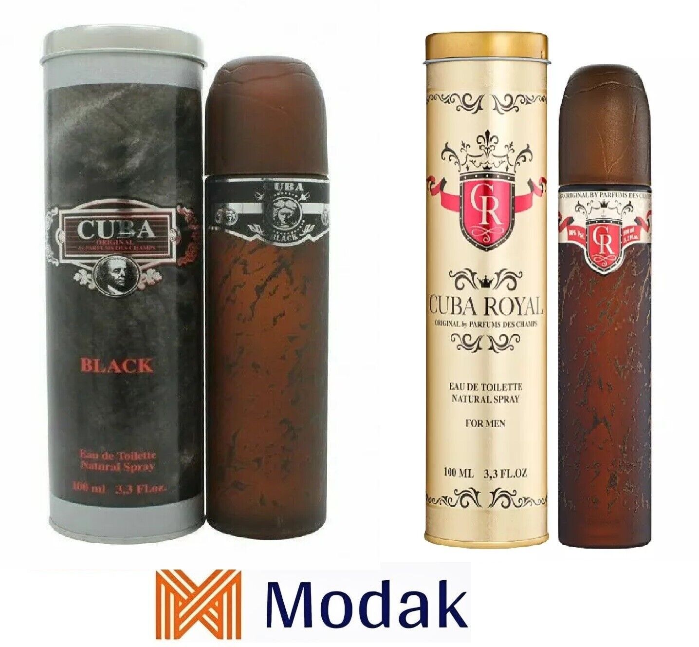 Modak 2 Pack Mens Perfume DES CHAMPS CUBA BLACK, CUBA ROYAL EDT 100ml