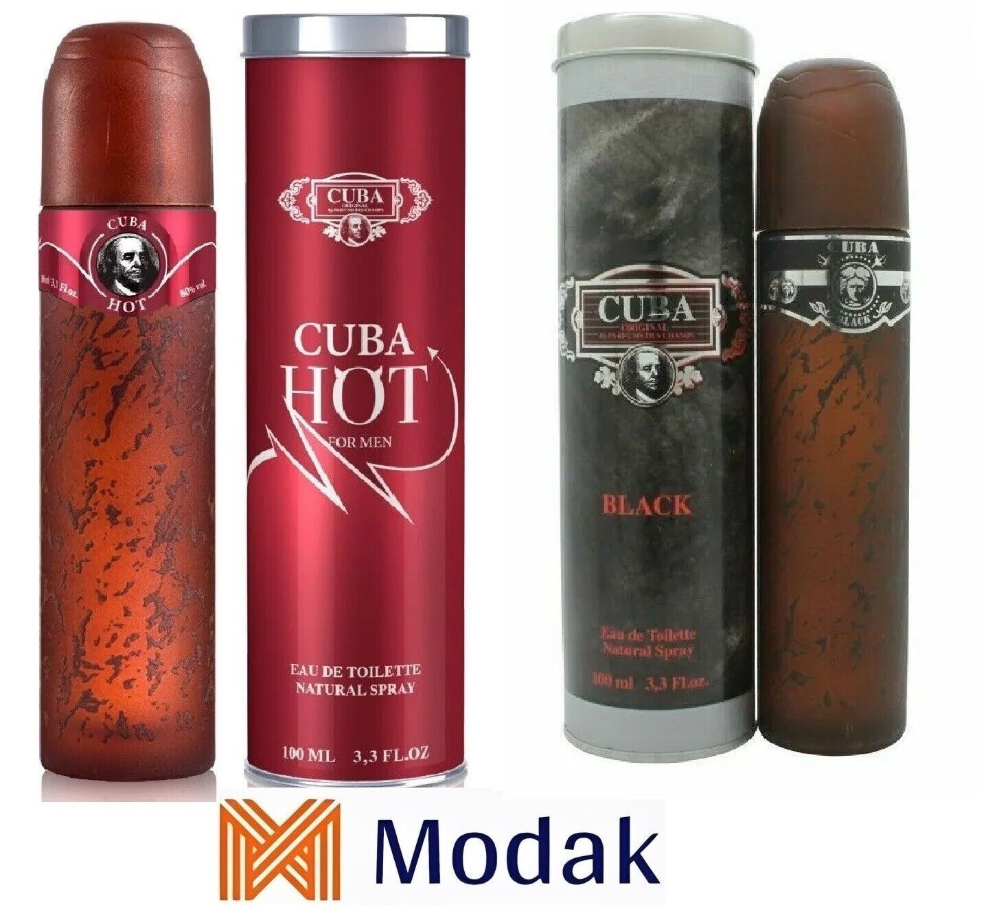 Modak 2 Pack Mens Perfume DES CHAMPS CUBA BLACK, CUBA HOT EDT 100ml