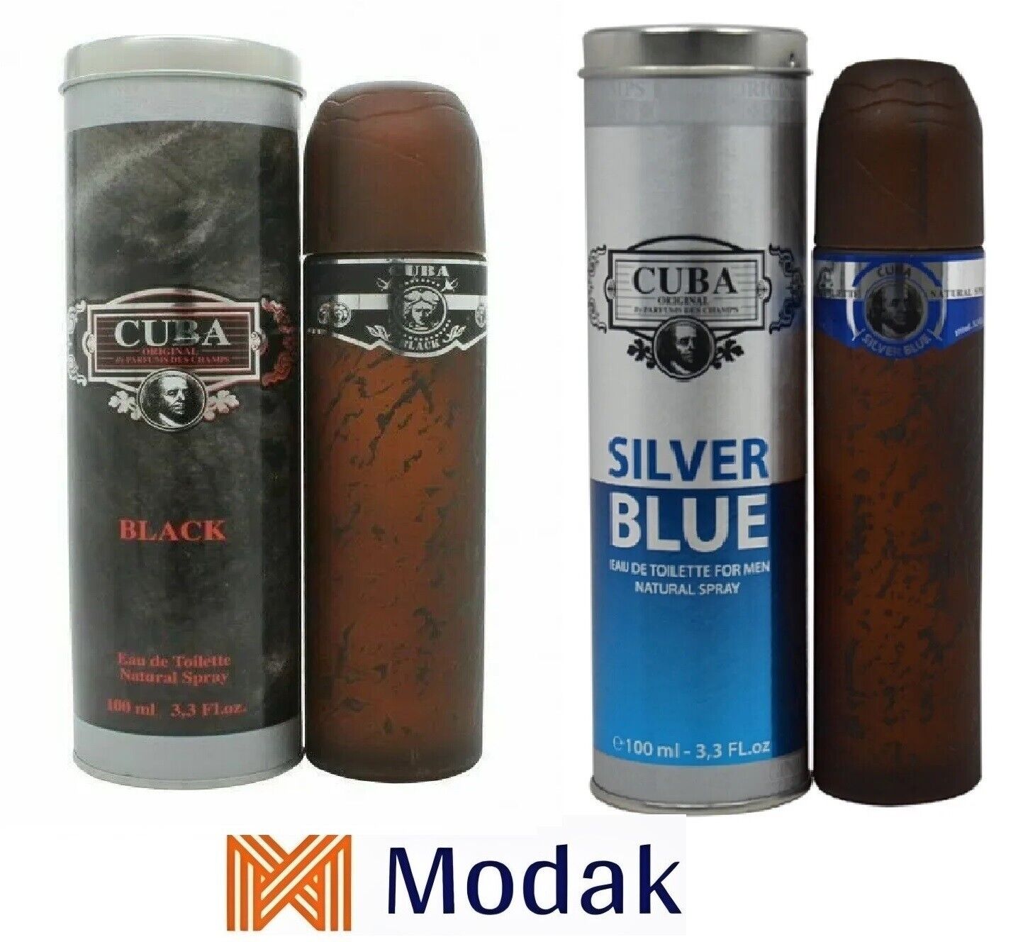 Modak 2 Pack Mens Perfume DES CHAMPS CUBA BLACK, CUBA SILVER BLUE EDT 100ml