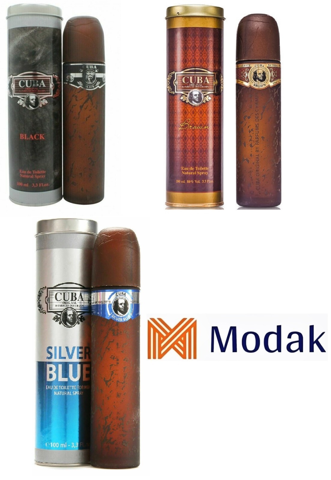 Modak 3 Pack Mens Perfume CUBA BLACK, CUBA BROWN, CUBA SILVER EDT 100ml