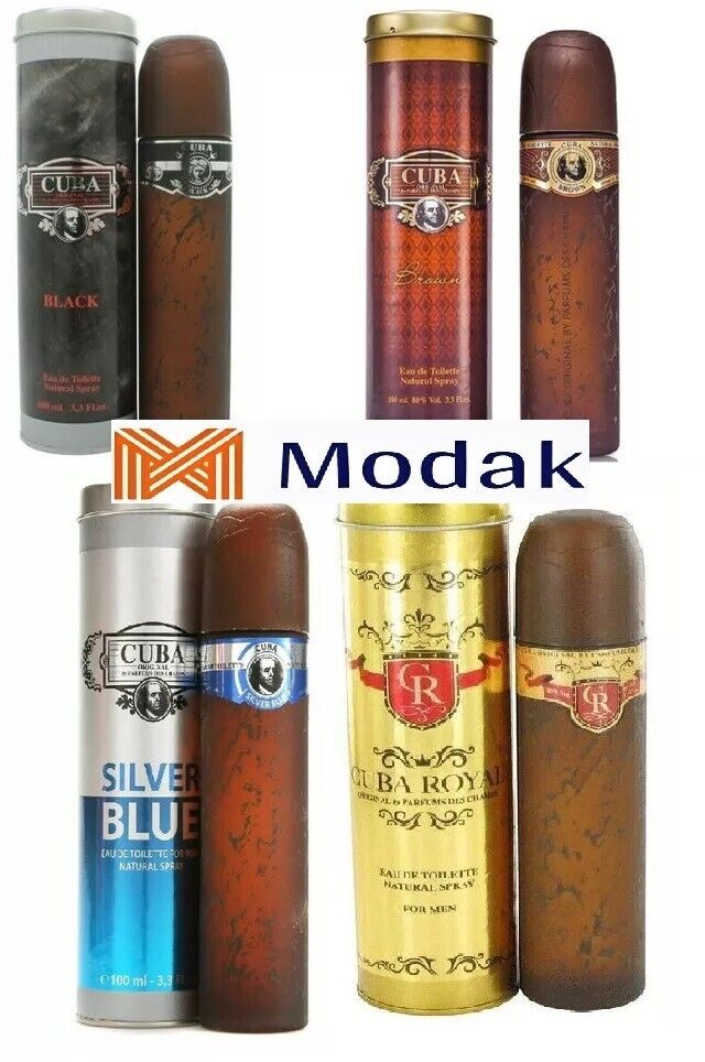Modak 4 Pack Mens Perfume CUBA BLACK,CUBA BROWN,CUBA SILVER,CUBA ROYAL EDT 100ml