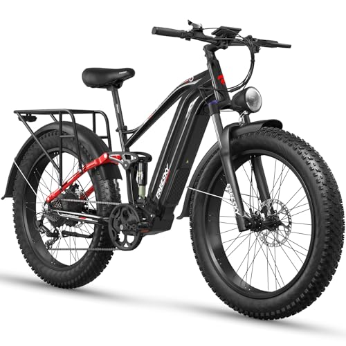 BURCHDA Dual Motor 95/190 N.m Electric Mountain Bikes for Adults E-Bike 48V 20Ah Removable Battery up to 120 km, 26X4 Fat Tire Ebike with LCD Display Full Suspension Bicycle RX80 (RX80 Single Motor)
