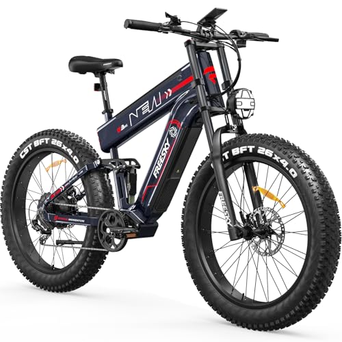 FREESKY Eurostar Electric Bike for Adults 48V 25Ah 95 Miles Long Range E-bike,25 KM/H Full Suspension & Dual Hydraulic Brakes Electric Mountain Bike,26" Fat Tire E-bike (Standard)