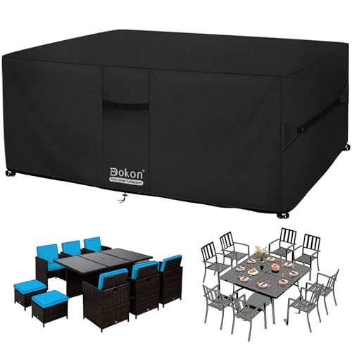 Dokon Garden Furniture Covers Waterproof Upgrade 420D Oxford Fabric Cube Patio Set Cover Weatherproof Winter Outdoor Table and Chair Cover with Air Vents, Multi-size (300x250x100cm)