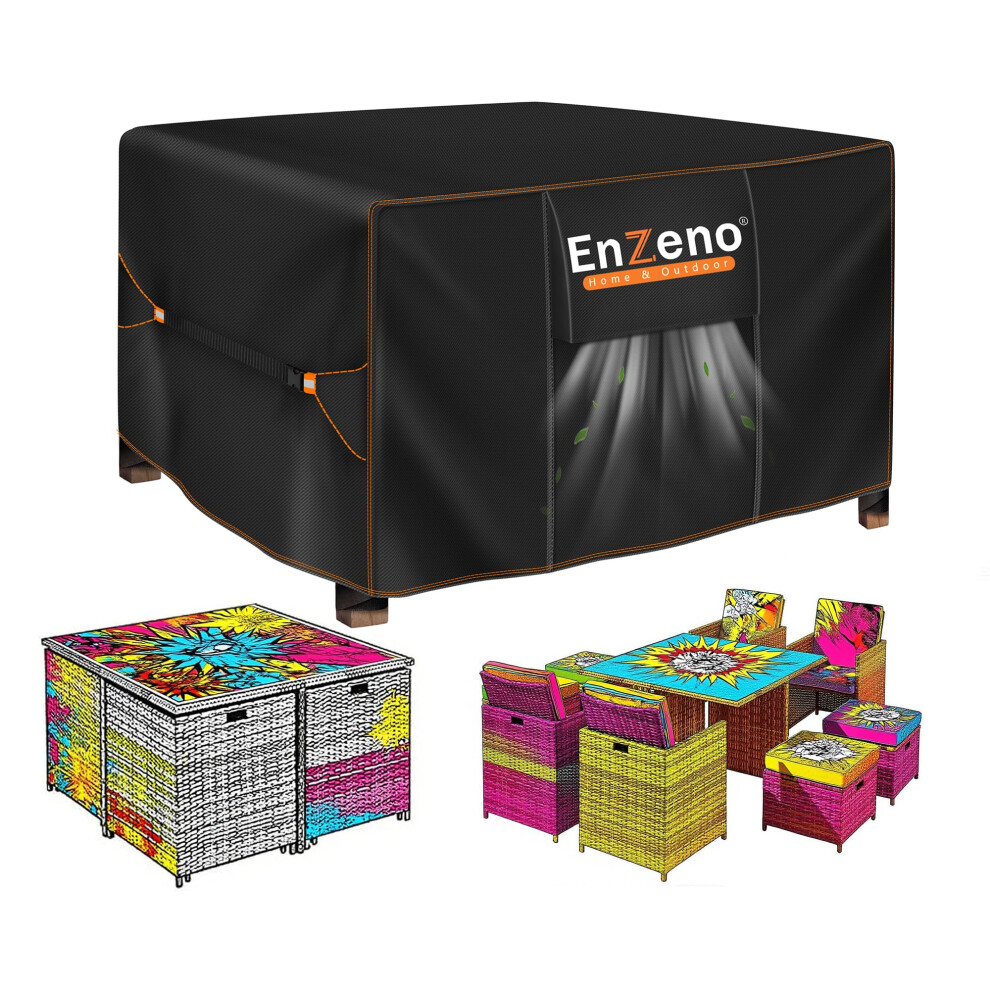 Enzeno Cube Garden Furniture Covers Waterproof for Outdoor, patio Rattan Cube Set Cover outside, Heavy Duty 420D Oxford Fabric Garden Square Table Cover with Air Vent (230*230*90cm)