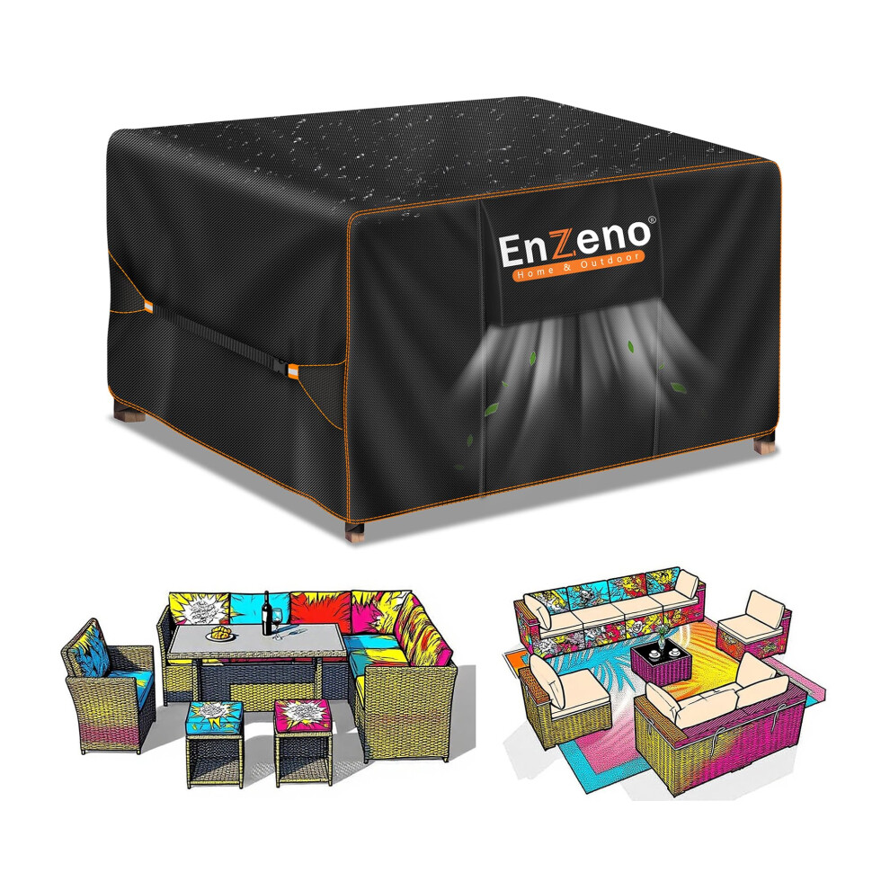 Enzeno Cube Garden Furniture Covers Waterproof for Outdoor, patio Rattan Cube Set Cover outside, Heavy Duty Oxford Fabric Garden Square Table Cover with Air Vent (250 * 250 * 90 cm)