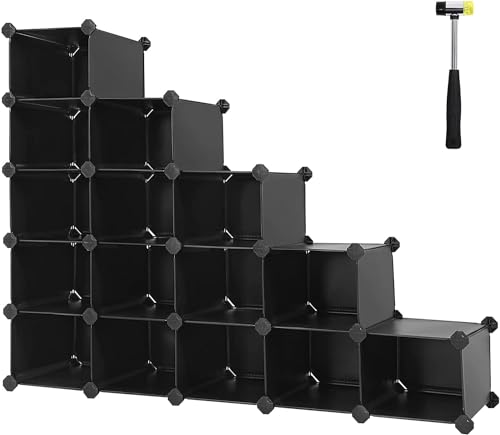XFZJCHAP 16-Cube Storage Unit, Shoe Rack, DIY Shelving System, Stackable Cubes, PP Plastic Shelf, Wardrobe, Closet Divider, for Bedroom, Office, 31 x 123 x 123 cm, Black LPC44BK