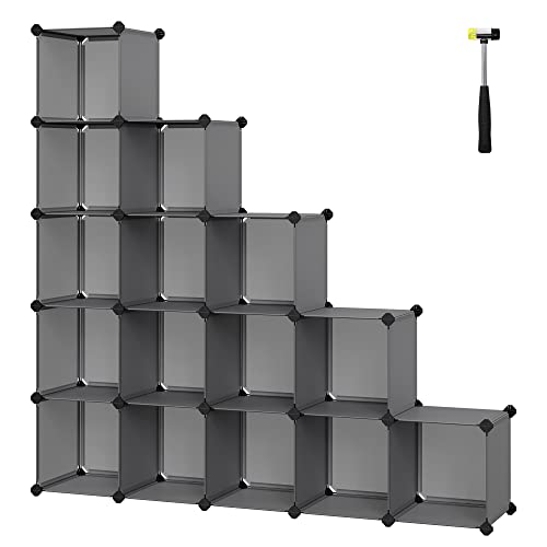 XFZJCHAP 16-Cube Storage Unit, Shoe Rack, DIY Shelving System, Stackable Cubes, PP Plastic Shelf, Wardrobe, Closet Divider, for Bedroom, Office, 31 x 123 x 123 cm, Grey LPC442G01