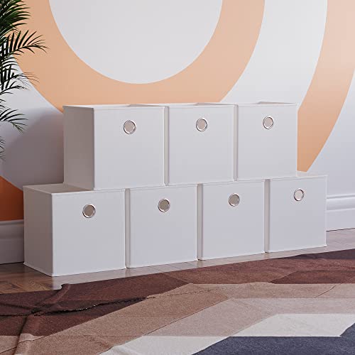 Vida Designs Durham Foldable Storage Cube Baskets Fabric Box With Metal Easy Access Handle Home Organiser (7 Pack, White)