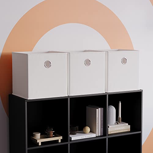 Vida Designs Durham Cube Bookcase Storage Organiser Living Room Bookshelf Home Office Furniture (6 Cube & 3 Black Baskets, White)
