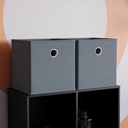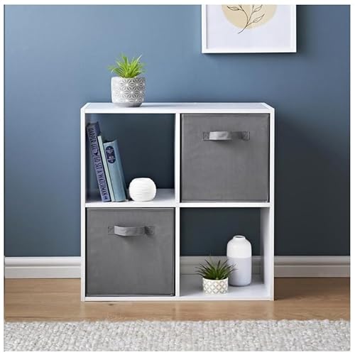 Vida Designs Durham Cube Bookcase Storage Organiser Living Room Bookshelf Home Office Furniture (4 Cube & 2 Black Baskets, Grey)