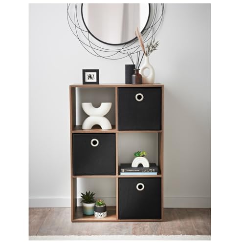 Vida Designs Durham Cube Bookcase Storage Organiser Living Room Bookshelf Home Office Furniture (6 Cube & 3 Black Baskets, Black)