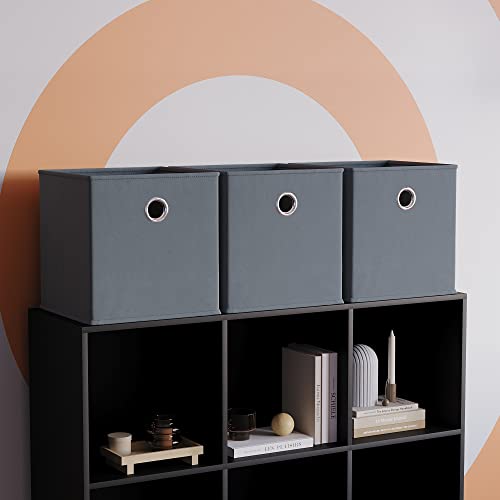 Vida Designs Durham Cube Bookcase Storage Organiser Living Room Bookshelf Home Office Furniture (6 Cube & 3 Black Baskets, Grey)