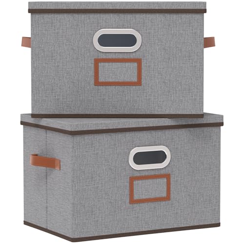 OUTBROS Lidded Boxes Storage, Cube Containers Baskets, Wardrobe Organiser for Shelves, Collapsible Home Office Fabric Bins, 45 x 30 x 30 cm, Grey, 2-Pack