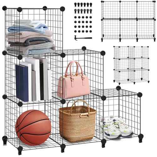 AWTATOS Cube Storage Unit, 6 Cube Wire Storage Shelves, Multifunctional DIY bookcases and Shelving Units Perfect for Office/Livingroom/kitchen/Bathroom, Black USCIH06BE