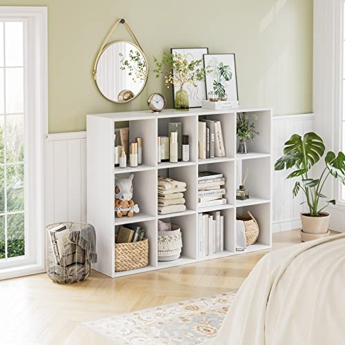 HOCSOK Cube Bookcase Bookshelf with 12 Cube Storage Units Wooden Display Shelving Storage Unit Office Living Room Furniture, White, 91 x 29 x 120 cm