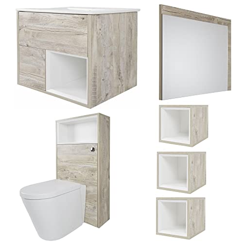 Milano Bexley Light Oak 610mm Bathroom Vanity Toilet WC Units Mirror Cube Storage Units