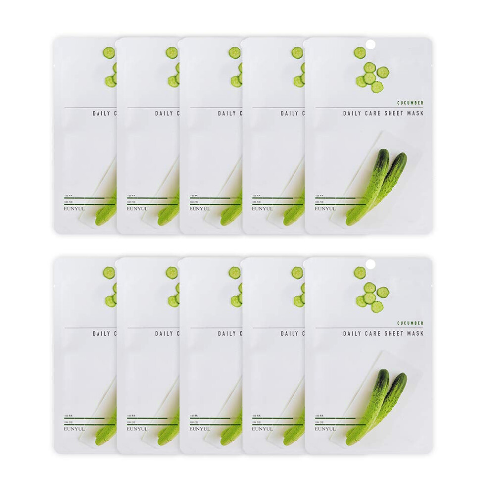 EUNYUL [Pack of 10] Daily Care Facial Sheet Mask Pack Cucumber x 10ea Korean Skincare Hydrating & Nourishing & Natural Ingredients for All Skin Types