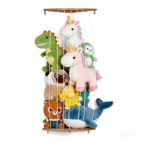 Teddy Storage,Wood Soft Toy Storage,Corner Teddy Bear Storage Hanging Shelves with Adjustable Length,Plush Cuddly Toy Storage Shelf,Stuffed Animal Storage for Living Room,Nursery,Bedroom,Playroom
