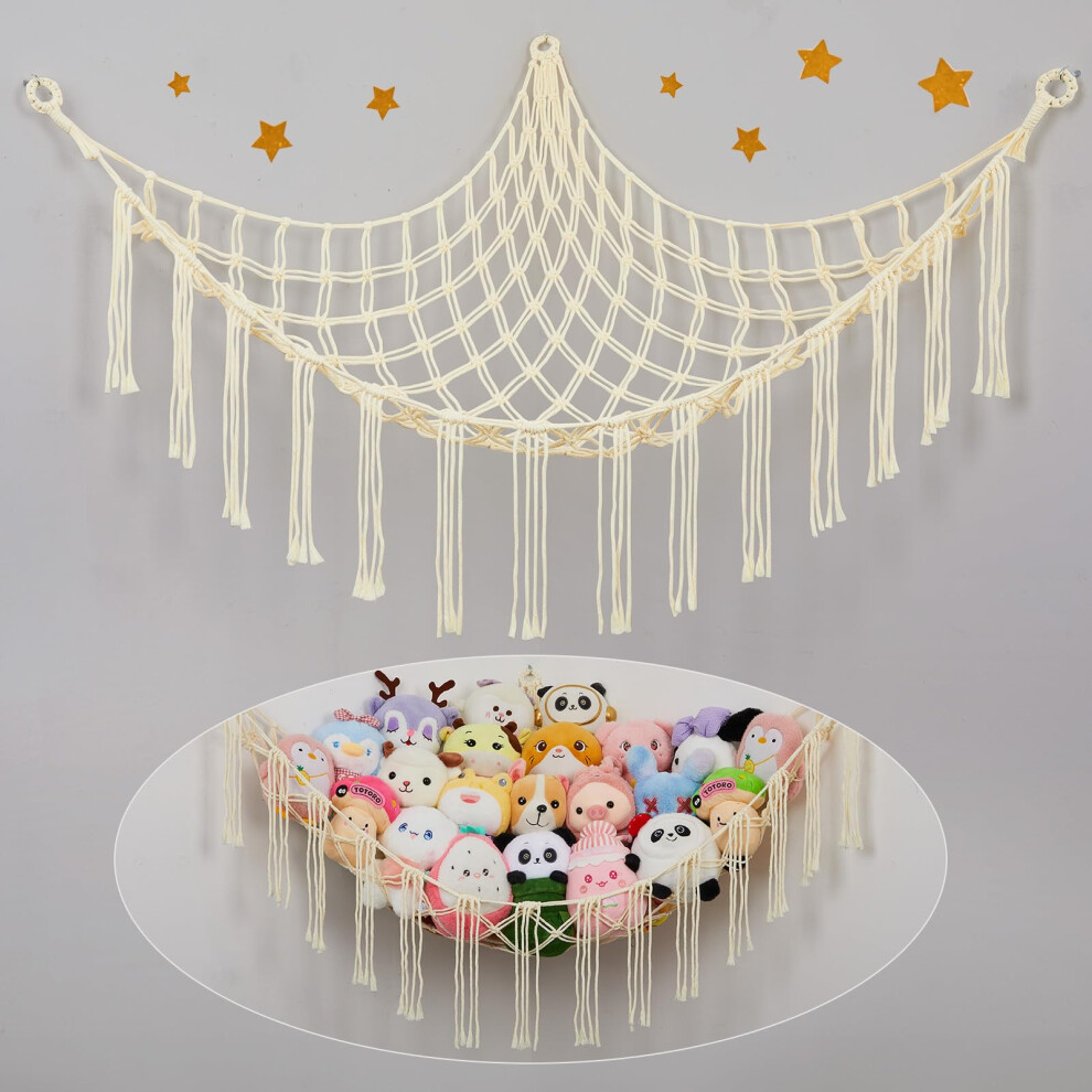 Cuddly Toy Storage Toy Storage Net Stuffed Toy Hammock Cuddly Toy Net Children's Room Decoration Hanging Organiser for Bedroom Cream