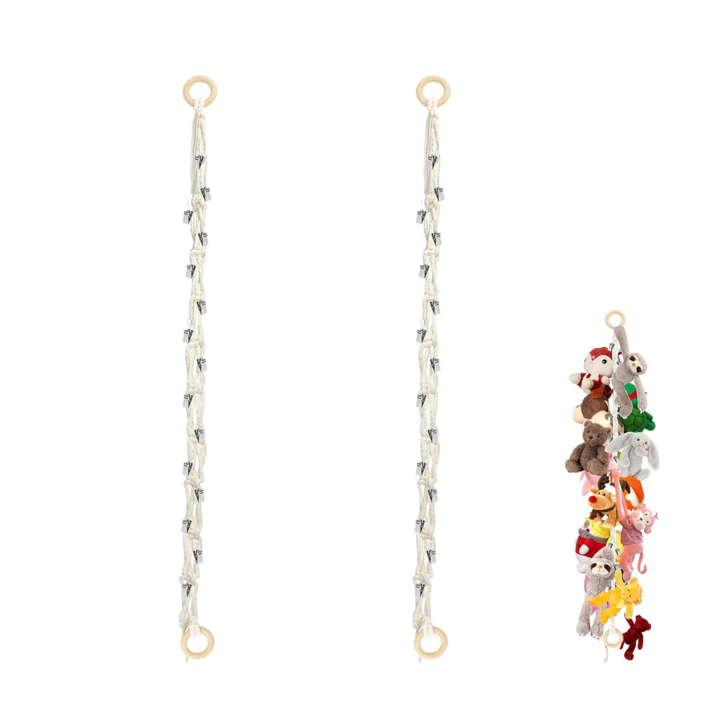 Storage Cuddly Toys, Pack of 2 Cuddly Toy Organiser with 2 Wooden Rings and 40 Clips, 2 m Stuffed Toy Hammock, Storage Cuddly Toys, Photos Toy Storage