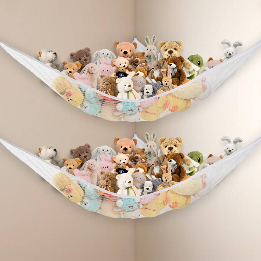 Pack of 2 Cuddly Toy Storage Net, Stuffed Toy Hammock Cuddly Toys, Hanging Toy Organiser, Cuddly Toy Net for Soft Toy, Plush Toy Storage, White