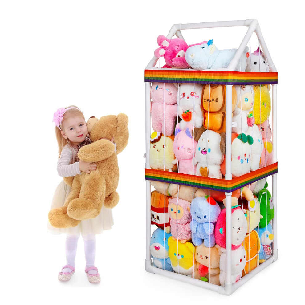 HONTIUS Iron Teddy Storage, Stuffed Animal Zoo Storage with Elastic DIY Tag, Large Kids Cuddly Soft Toy Storage Organizer for Kids Room Playroom Nursery Shelves Furniture Decor (B)