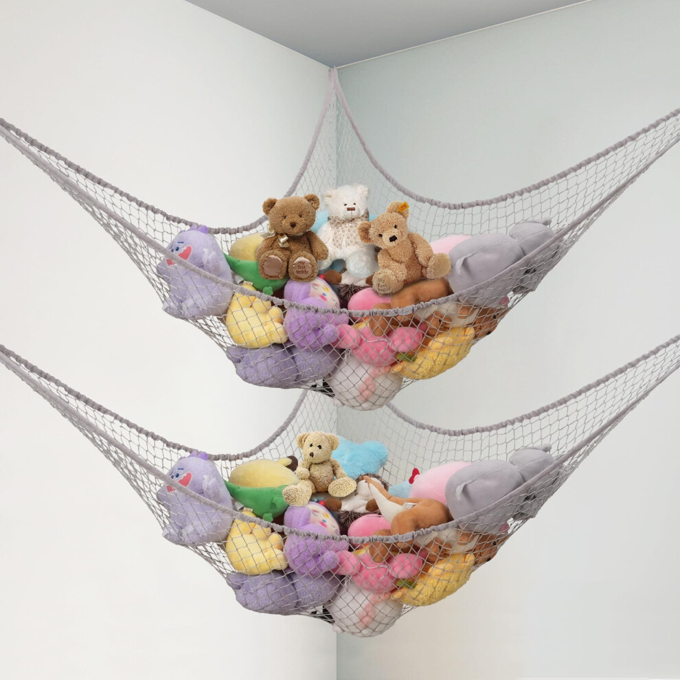 Powkoo Teddy Hammock 2 Pack - Soft Toy Storage Net - Cuddly Plush Toy Storage Hammock for Stuffed Animals - Teddy Bear Hanging Toy Storage - Large