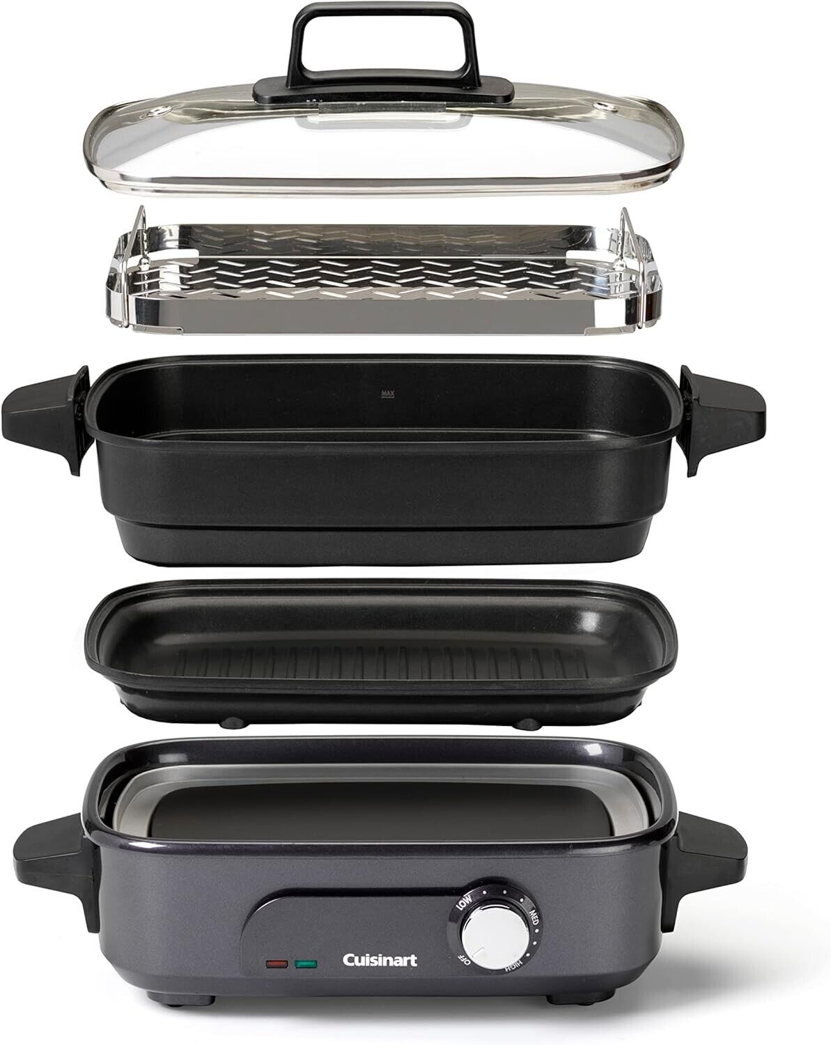 Cuisinart Cook In 5 in 1 Multi Cooker, Grill, Sear, Steam, Simmer and Slow Cooker, Non-Stick, Interchangeable plates and pans, Stackable, easy storing, Energy efficient, Midnight Grey