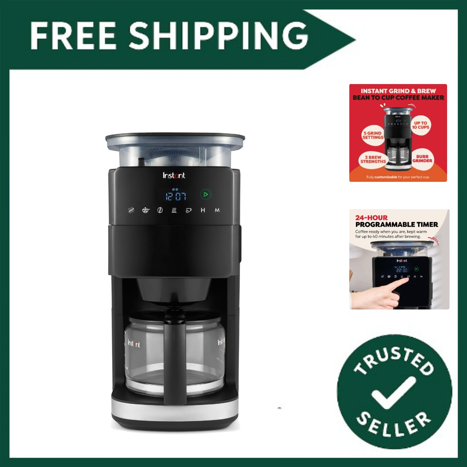 Instant Grind and Brew Bean to Cup Coffee Maker, 24 Hour Programmable Filter ...