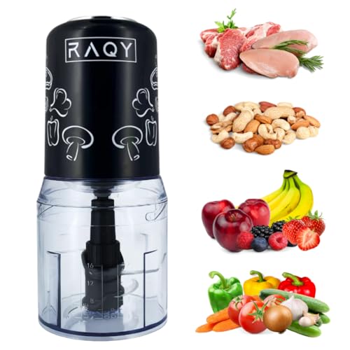 RAQY 400W Mini Food Processor, Food Chopper, 500mL Shock-Resistant Bowl – Vegetable Chopper & Meat Grinder, Powerful and Durable Quad Stainless Steel Blades