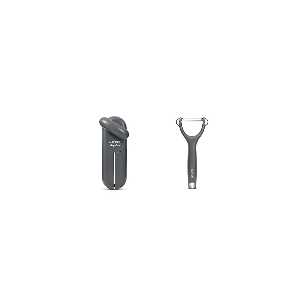 Bundle of Culinare MagiCan Tin Opener, Grey, Manual Can Opener, + Culinare Safety Peeler, Grey, Plastic/Stainless Steel, Y Shaped for Maximum Control and Comfort, Manual Potato/Vegetable/Fruit Peeler