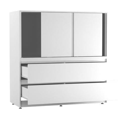 Panana 2 Doors Mirrored Wardrobe with 1 Drawer Storage Cupboard Unit Clothes Closet for Bedroom, 80 x 50 x 183cm (White)