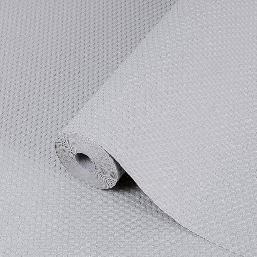 Hersvin Shelf Liners, 18in x 20ft Kitchen Drawer Mats, Non-Adhesive EVA Cupboard Protector, Cabinet Lining (Light Gray/Dot)