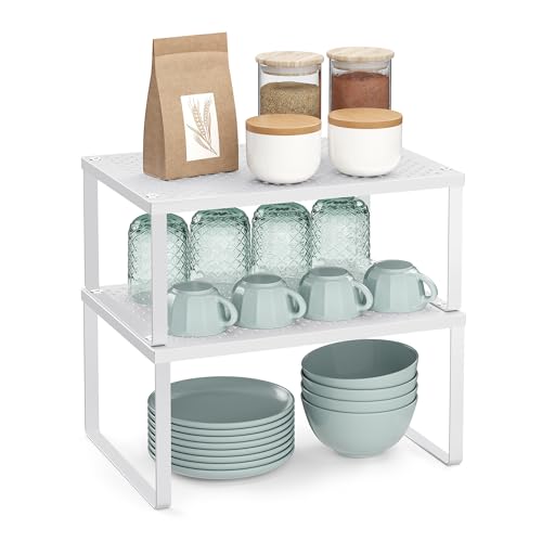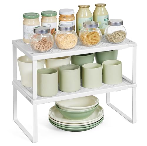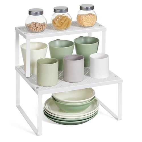 Civenhhd Expandable Cupboard Organisers, Kitchen Storage Rack, Metal Shelves (White, 22L x 17H x 25-45W cm)