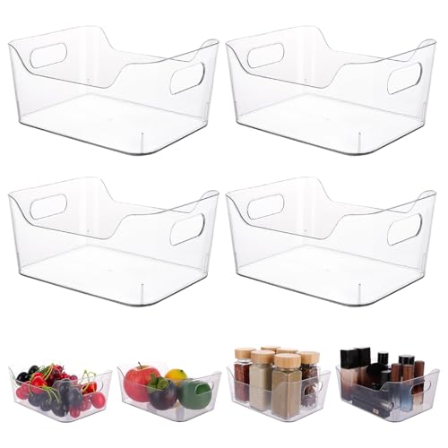 ASelected 4PCS Clear Plastic Storage Organisers Fridge Storage Box with Handles Design Drawer Trays for Desk, Makeup , Kitchen Pantry Cabinet, Cupboard (19.7x13.9x7.7CM)